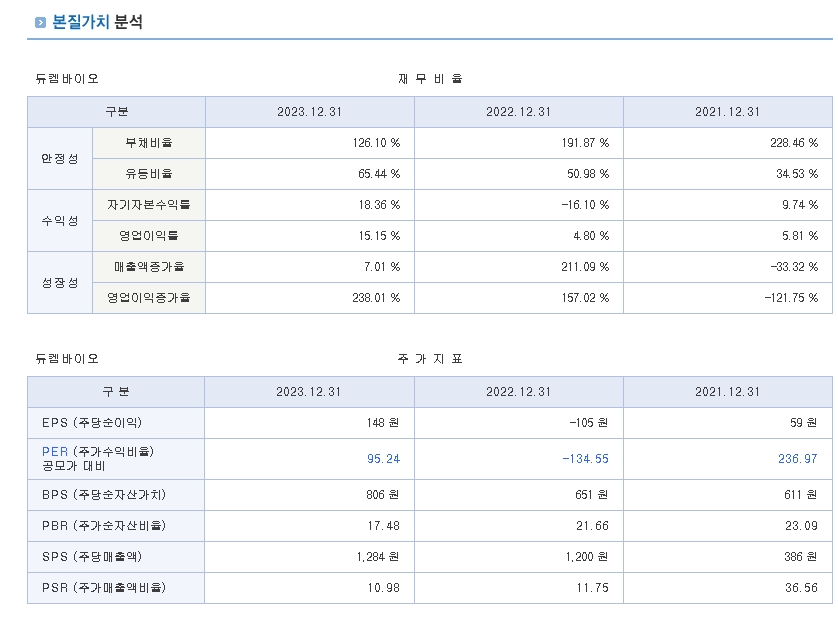 - 재무 안정성: 듀켐바이오는 안정적인 재무 구조를 유지하고 있으며, 최근 몇 년간 꾸준한 매출 성장을 기록하고 있습니다.