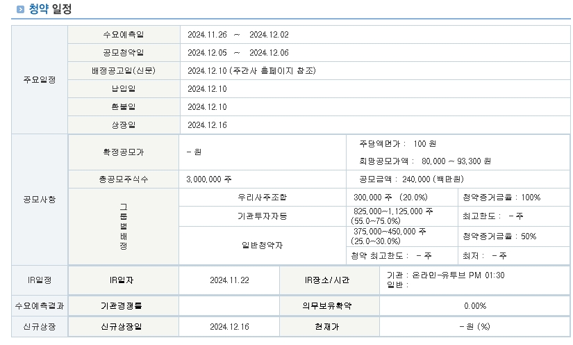 - 청약일: 2024년 12월 5일 ~ 2024년 12월 6일
