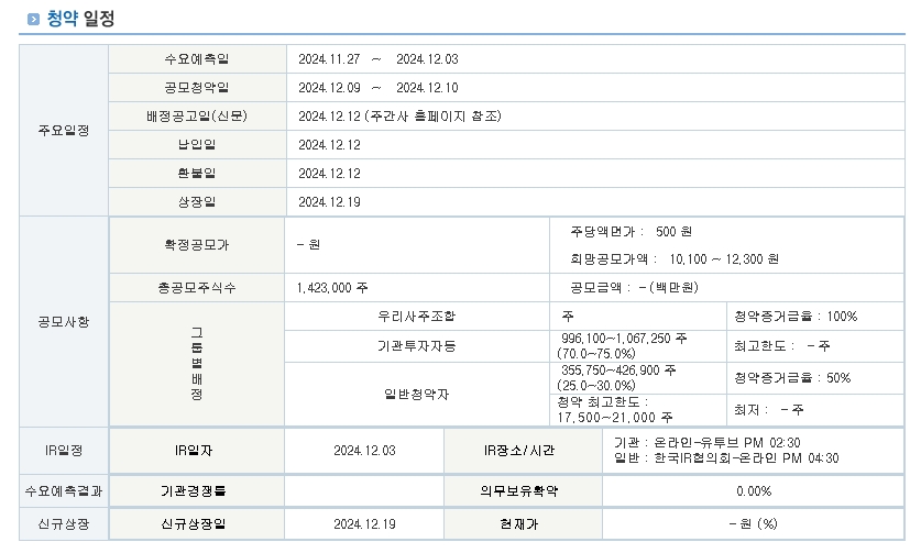 - 청약일: 2024년 12월 9일 ~ 2024년 12월 10일