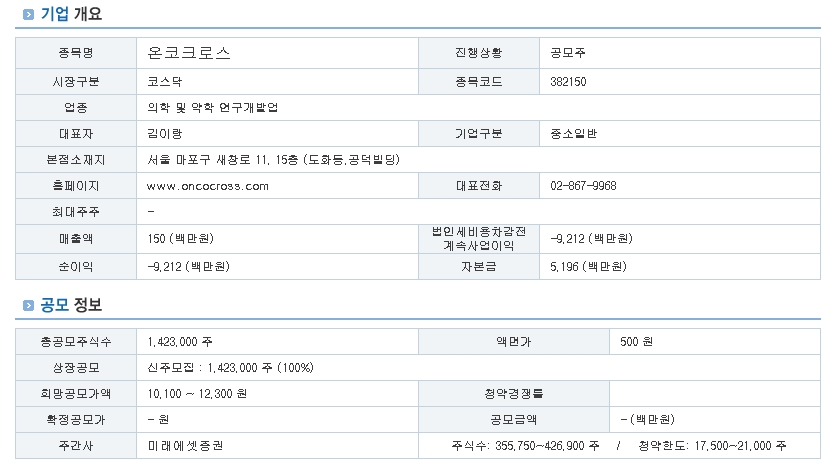온코크로스의 청약에 많은 관심과 성공적인 투자를 기원합니다.