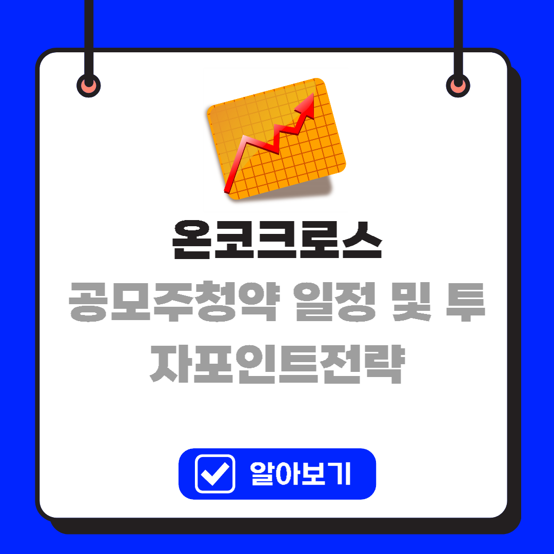 온코크로스의 청약 일정과 투자 전략에 대해 알아보았습니다. 이번 청약에 참여하려는 투자자들은 수요예측 결과를 주의 깊게 살펴보고, 청약 일정을 철저히 준수하는 것이 중요합니다. 또한, 분산 투자를 통해 리스크를 최소화하는 전략을 추천드립니다. 온코크로스의 향후 성장 가능성을 고려할 때, 장기적인 관점에서의 투자가 유리할 수 있습니다.